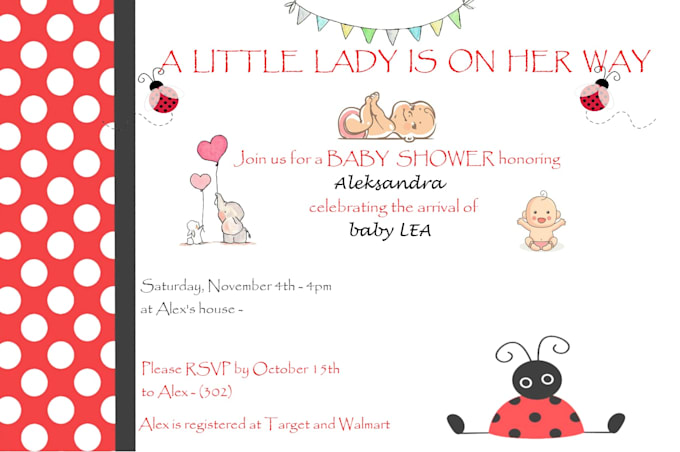 When you need an invitation or a card for any occasion I am here to help.If you have a design that you want or if you would like me to design your own, just let me know in ordering and I will make it happen.