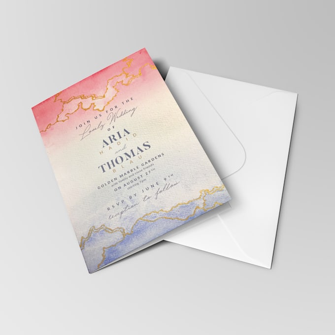 I will create a wedding invitation in the style you like: modern, classic, rustic, shabby chic, formal, and etc.